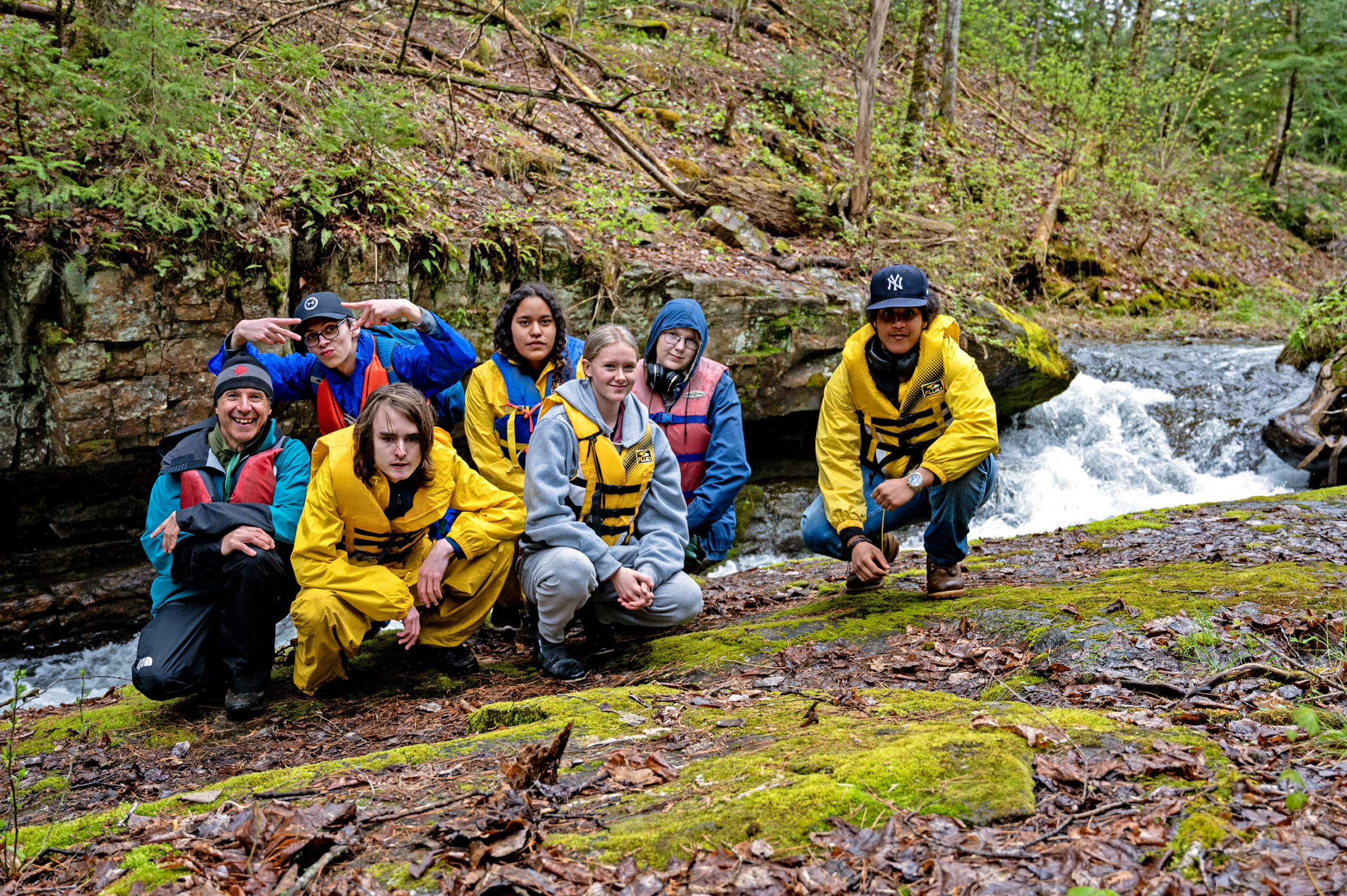 Halfway through the wet journey, the group stopped for lunch near a beautiful waterfall. After lunch some students went exploring, and after a student asked what kind of flowers were growing by the stream, Mr. E explained the delicate nature of the Red Trillium, and how it takes seven years to bloom. Learning about nature and the environment happened organically like this throughout the entire canoe camping trip. Alan Earwaker was always happy to share advice when he saw a need, as well as answer the students’ many questions, always involving as many students as possible in the lesson.