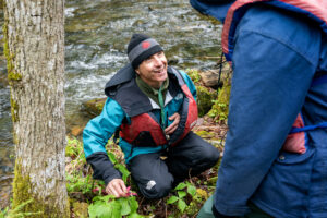 Halfway through the wet journey, the group stopped for lunch near a beautiful waterfall. After lunch some students went exploring, and after a student asked what kind of flowers were growing by the stream, Mr. E explained the delicate nature of the Red Trillium, and how it takes seven years to bloom. Learning about nature and the environment happened organically like this throughout the entire canoe camping trip. Alan Earwaker was always happy to share advice when he saw a need, as well as answer the students’ many questions, always involving as many students as possible in the lesson.