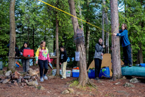 Upon arrival the students and teachers worked together to set up their tents and the main camp. A fire was started, and the rain eventually (thankfully) stopped. Ms. Ahern-Davy proceeded to divide students into their teams for cooking and cleaning duties. For many students, the trip also served as a crash course for how to make a meal! They used two flipped canoes as food prep tables, and Mr. E provided all the cooking and cleaning supplies.