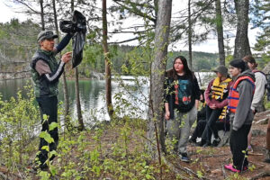 Some of the Maniwaki Woodland students on this trip have been learning from Mr. E’s unique nature programs since Kindergarten, and this excursion marked their last activity with him before both their graduation and his retirement. The immense respect and appreciation the students have cultivated for Mr. Earwaker over the years shines through in his presence, as they cheerfully volunteer their aid, and listen intently to his instructions and lessons.