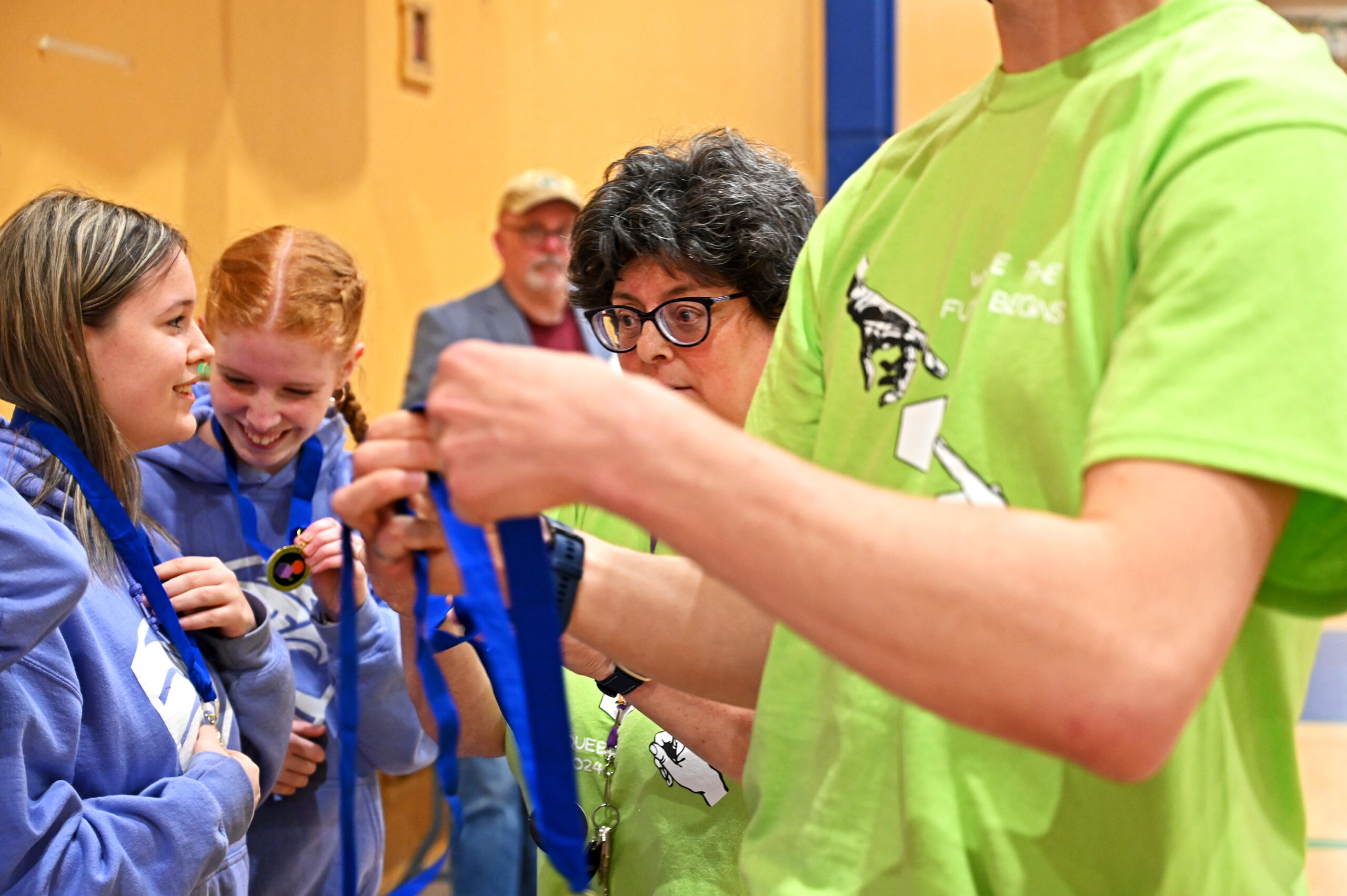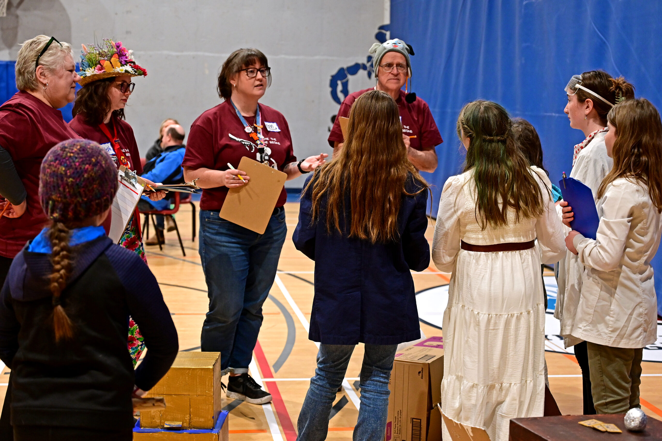 In the Fall, Steve Greig and Alan Earwaker ran the overnight Destination Leadership (DL) camp for grade 10-11 students who would be a part of facilitating the DI day. After the leadership camp, Lisa and Steve planned for the tournament, reaching out to appraisers, designing t-shirts and pins for DI, and offering training to the appraisers, to name a few of the tasks. The last three weeks before the tournament, the team worked full-time on preparations for the tournament itself. There were also two challenge masters who helped with the training: Math/Science Consultant Jeff Harvey for the technical challenge, and the board’s Archivist Tracey Olson for the Instant Challenge.