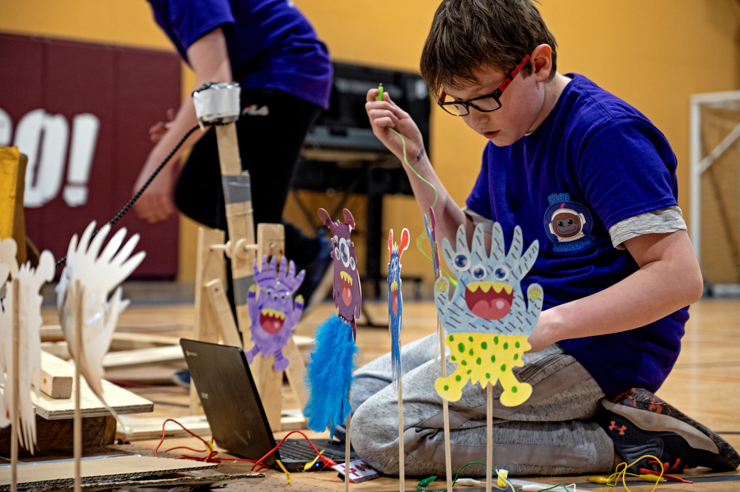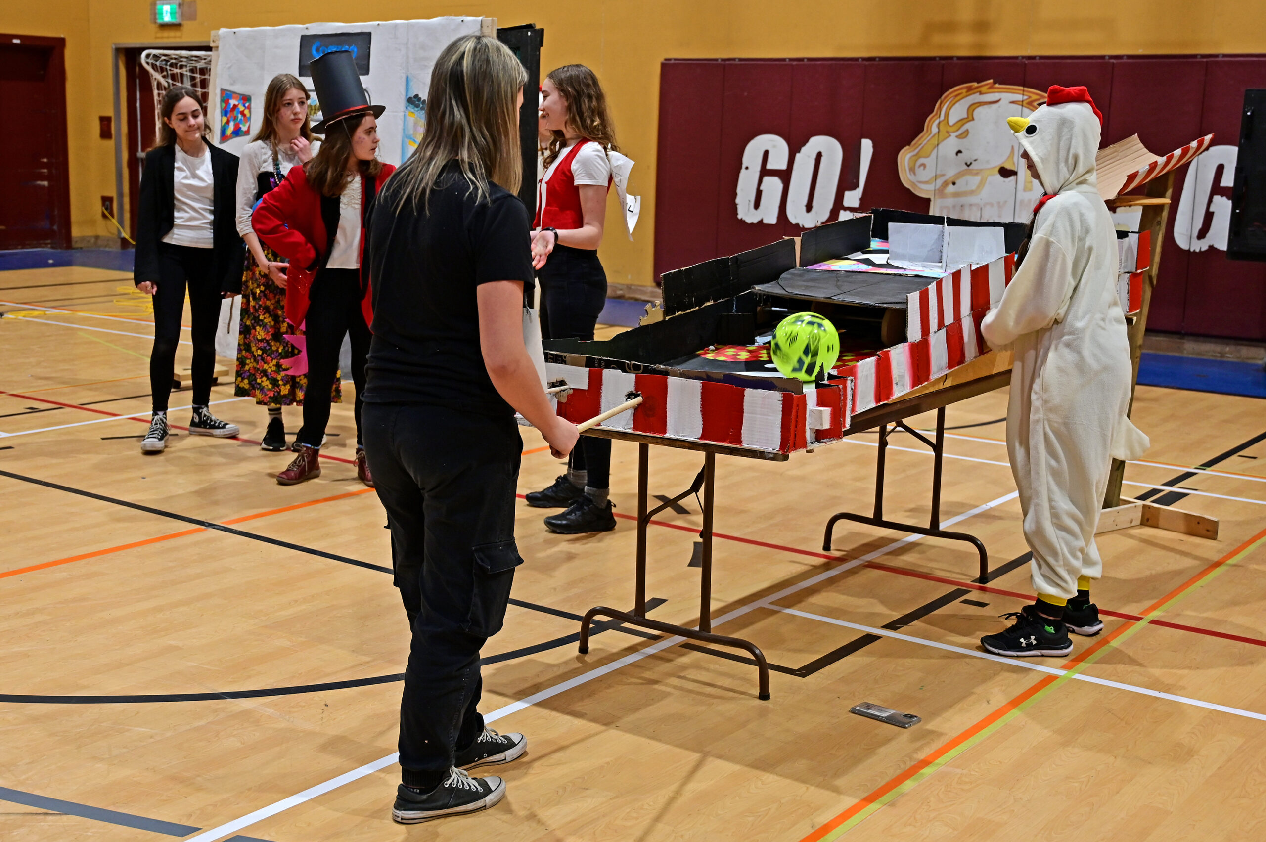 Destination Imagination (DI) is an international competition which challenges elementary and middle school students’ scientific, technical, and fine arts skills. The regional competition took place at Symmes Junior High/D’Arcy McGee High School Friday, March 22nd. The Western Québec School Board has been proudly participating in DI for the last 13 years, and the organizers for the event, Educational Technology Consultant Lisa Diner and Consultant in Complementary Services, Steve Greig offered two main challenges to the participating students: a technical challenge for middle school teams and a scientific challenge for the elementary school teams.