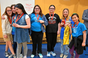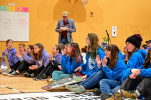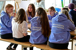 In the Fall, Steve Greig and Alan Earwaker ran the overnight Destination Leadership (DL) camp for grade 10-11 students who would be a part of facilitating the DI day. After the leadership camp, Lisa and Steve planned for the tournament, reaching out to appraisers, designing t-shirts and pins for DI, and offering training to the appraisers, to name a few of the tasks. The last three weeks before the tournament, the team worked full-time on preparations for the tournament itself. There were also two challenge masters who helped with the training: Math/Science Consultant Jeff Harvey for the technical challenge, and the board’s Archivist Tracey Olson for the Instant Challenge.